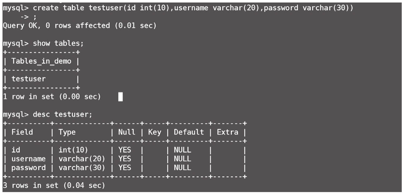先创建一个数据库demo,再创建一个testuser表,结构如图1-35所示。