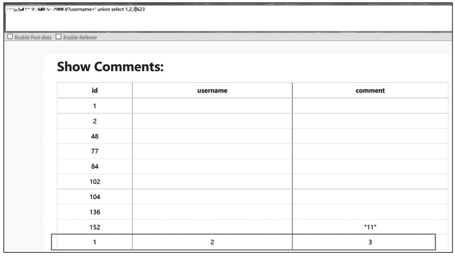 SQL语句:select*from news where id=1 union select 1,2。