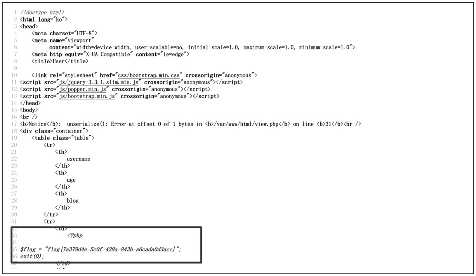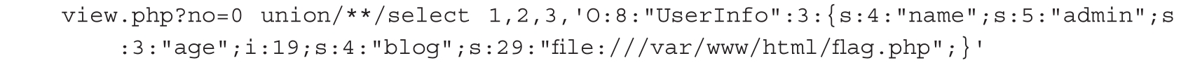 data数据段是一个序列化串,程序正常应该是从data字段中取出序列化串,然后进行反序列化,最终把信息展示给我们。我们在data字段中将blog的值修改为file:///var/www/html/flag.php,即可触发SSRF漏洞并获取flag,代码如下。