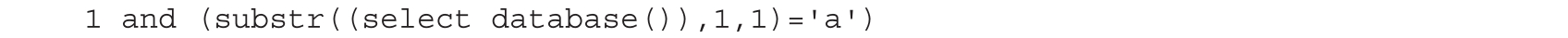 代码中substr((select database()), 1, 1)='a'的意思是判断select database()语句查询结果的第一个字符是否为a。这样我们只需要遍历字符就能判断出数据库名的第一位字符。执行结果如图1-18所示。