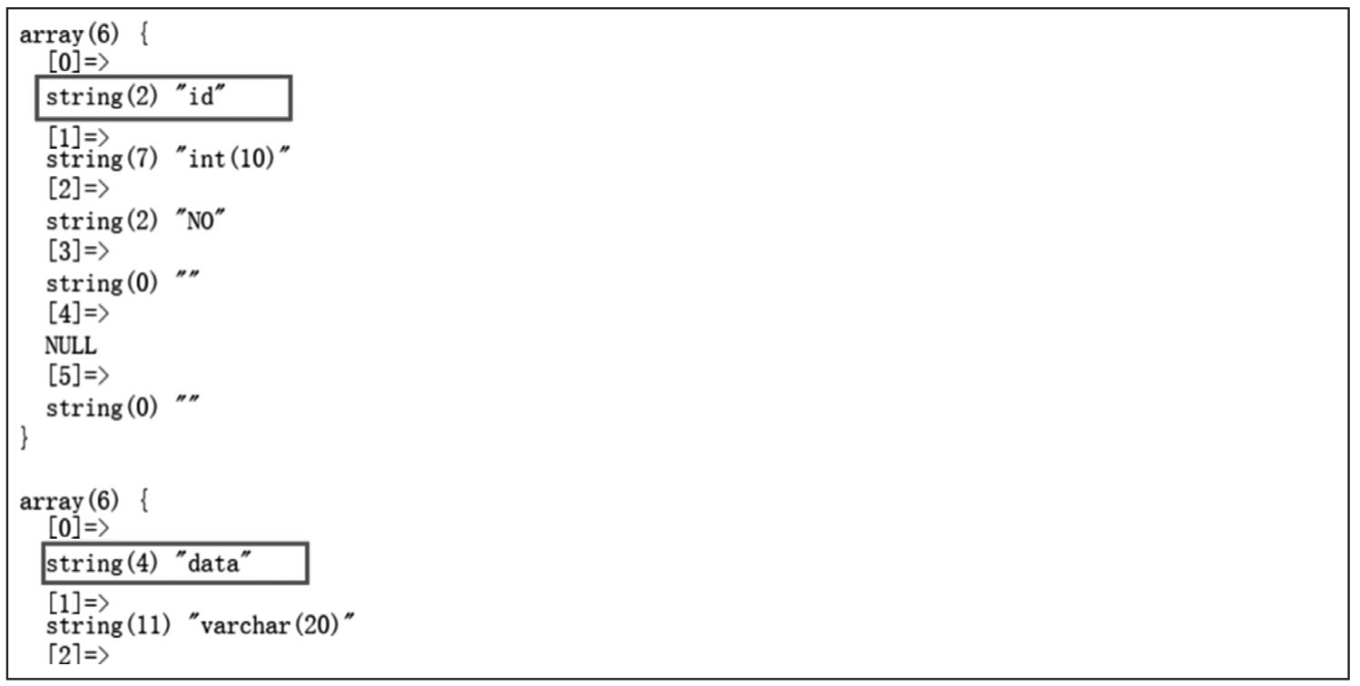查询表中的列名同样是通过information_schema数据库进行查询,代码如下。