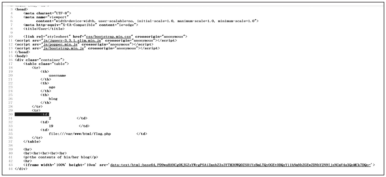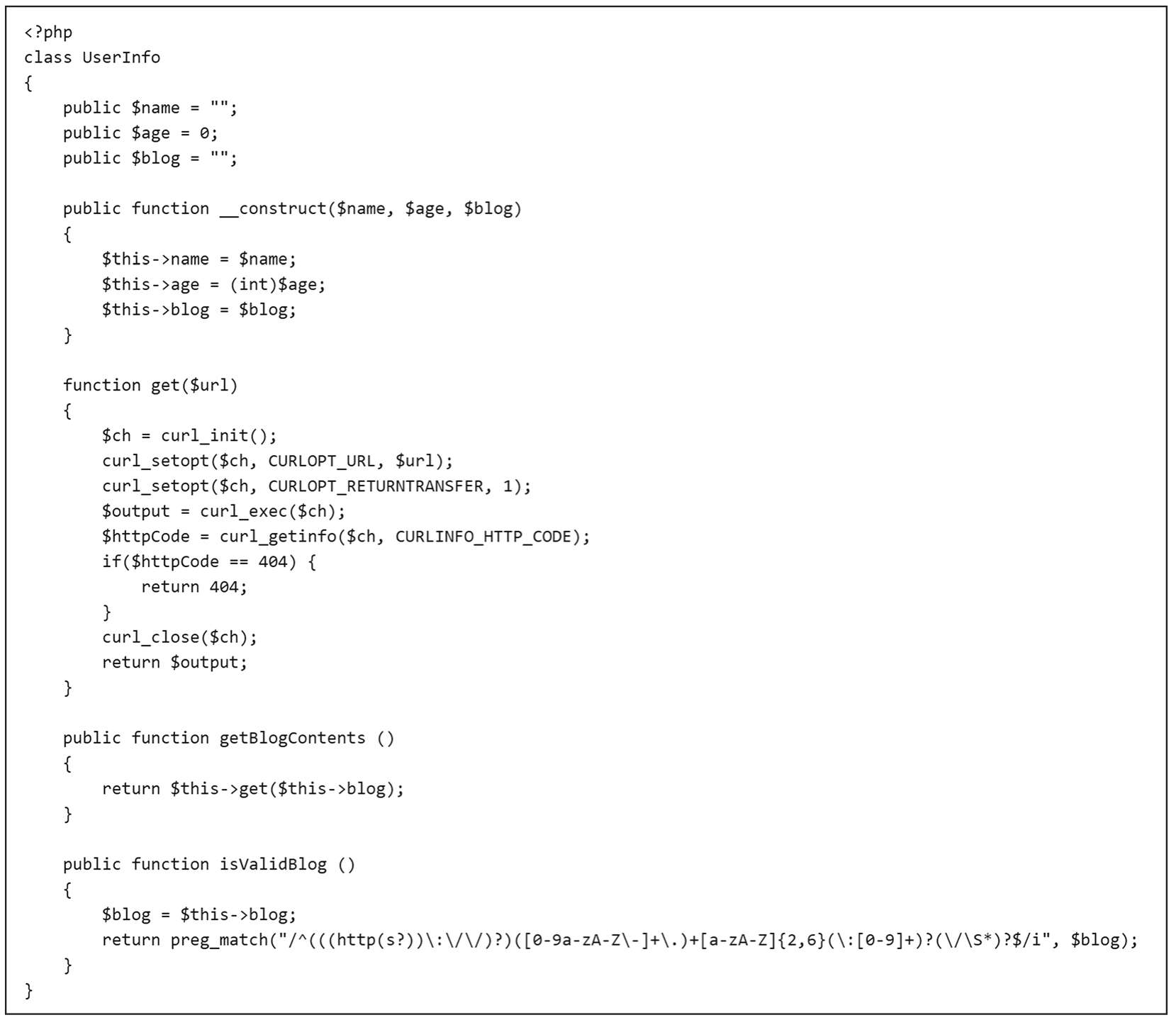在注册界面输入的blog字段经过了isValidBlog()函数的过滤。由于get()函数存在SSRF漏洞,因此直接在注册界面输入file://var/www/html/flag.php就能拿到flag。