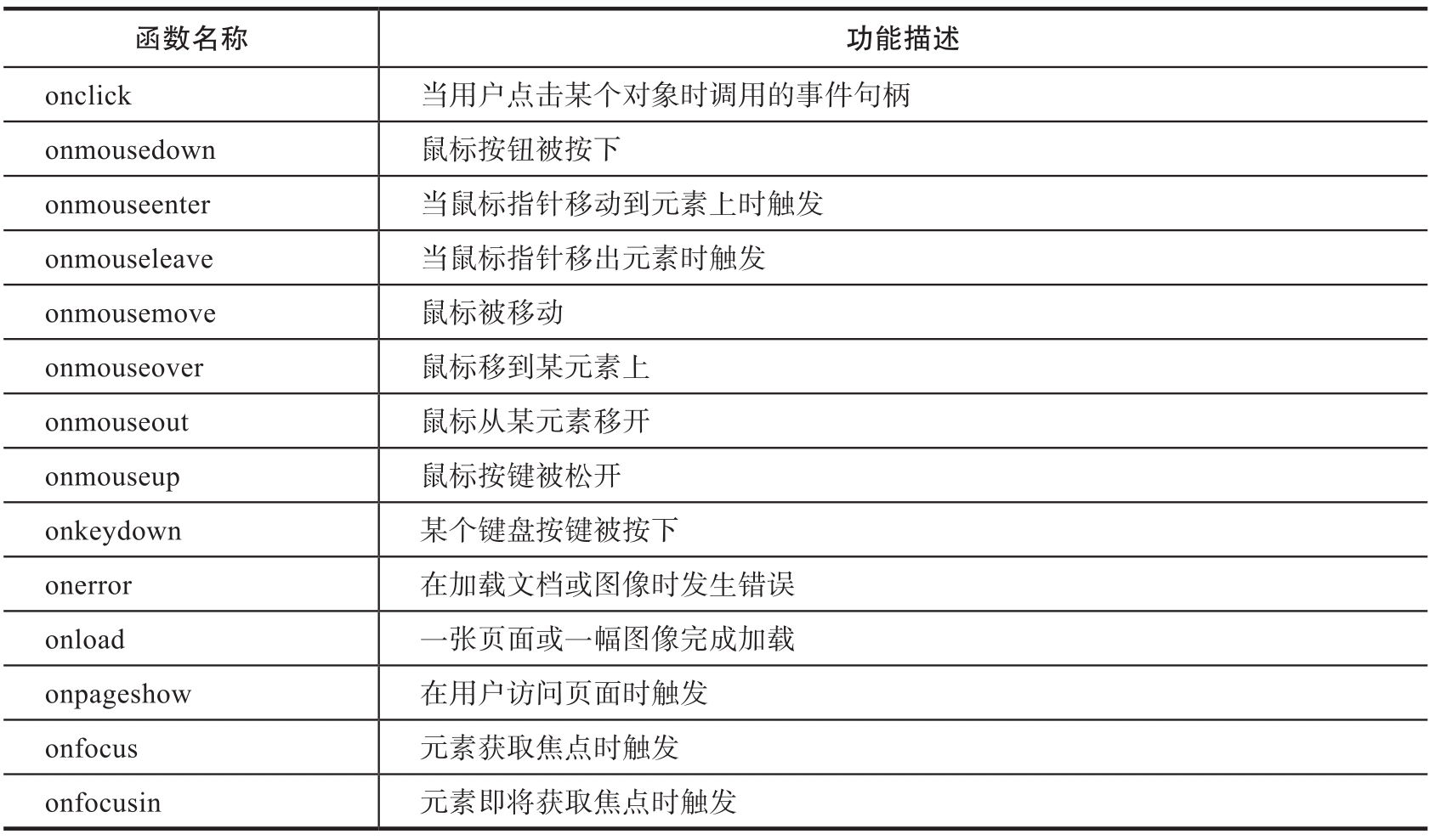 这里列出一些常用的事件对象,如表1-2所示。