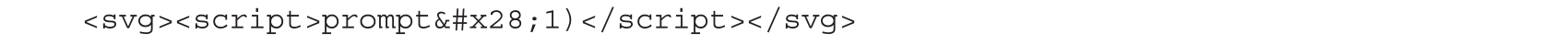 JavaScript里某些函数是支持用``代替()的,除了prompt()函数不支持。SVG标签会将XML实体解析后加入标签,我们可以利用其会解析编码的特性绕过一些符号的过滤,代码如下。