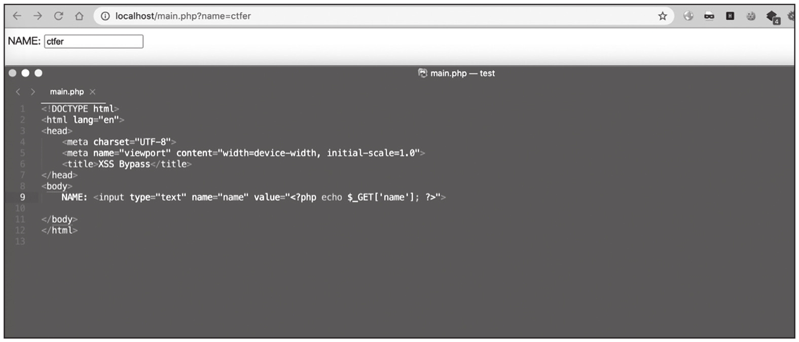 将URL中的GET参数Name的值直接输出在网页中,如图1-54所示。