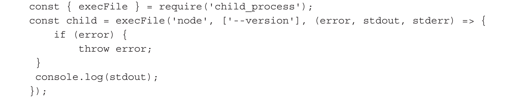execFileSync()的作用与execFile()相同,不同之处在于该函数在子进程完全关闭之前不会返回。当遇到超时并发送killSignal时,该方法在进程完全退出之前不会返回,代码如下。