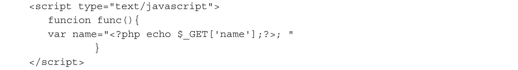 输出位置在<script>标签的情况还是比较常见的。举个例子,我们输入的name字段会被拼接到<script>标签内,并且被一个函数的"和{}包裹,代码如下。