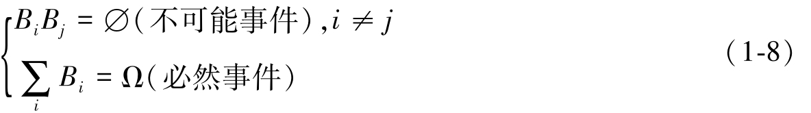 把具有式(1-8)所示的这些性质的一组事件称为一个“完备事件群”。