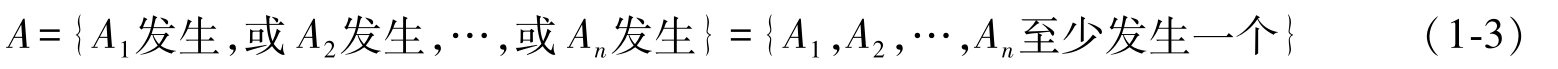 事件的和很自然地可以推广到多个事件的情形:设有若干个事件 A 1 , A 2 ,…, A n ,它们的和 A 定义为事件