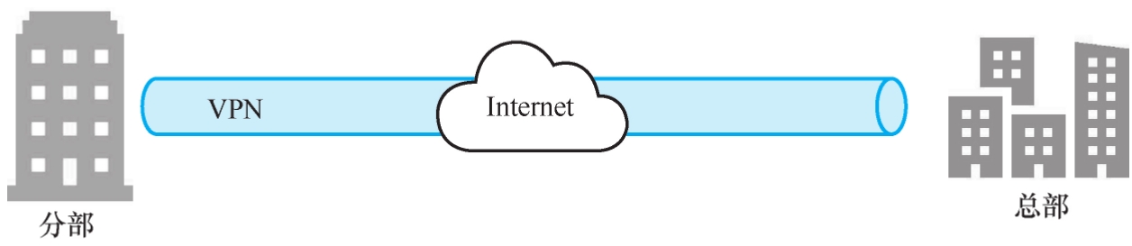 VPN通过在现有的Internet中构建专用的虚拟网络,可以实现总部和分部的通信,解决了安全通信的问题。