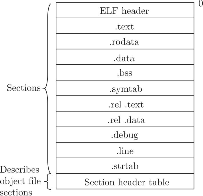 (1)可重定位的目标文件。可重定位的目标文件的典型格式如图2.2所示,这种类型的目标文件包含了可以和其他可重定位目标文件结合的二进制代码和数据,在链接时可形成一个可执行的目标文件。