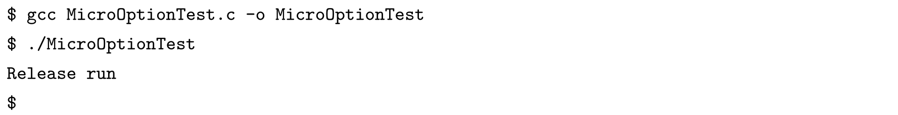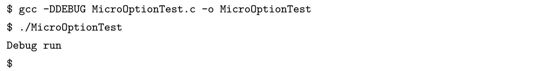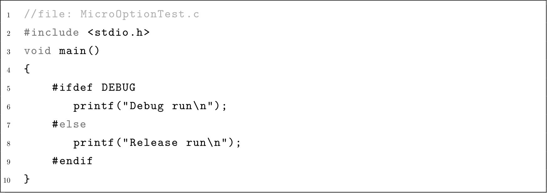 Listing 2.6 宏定义及编译选项-D测试源码MicroOptionTest.c
