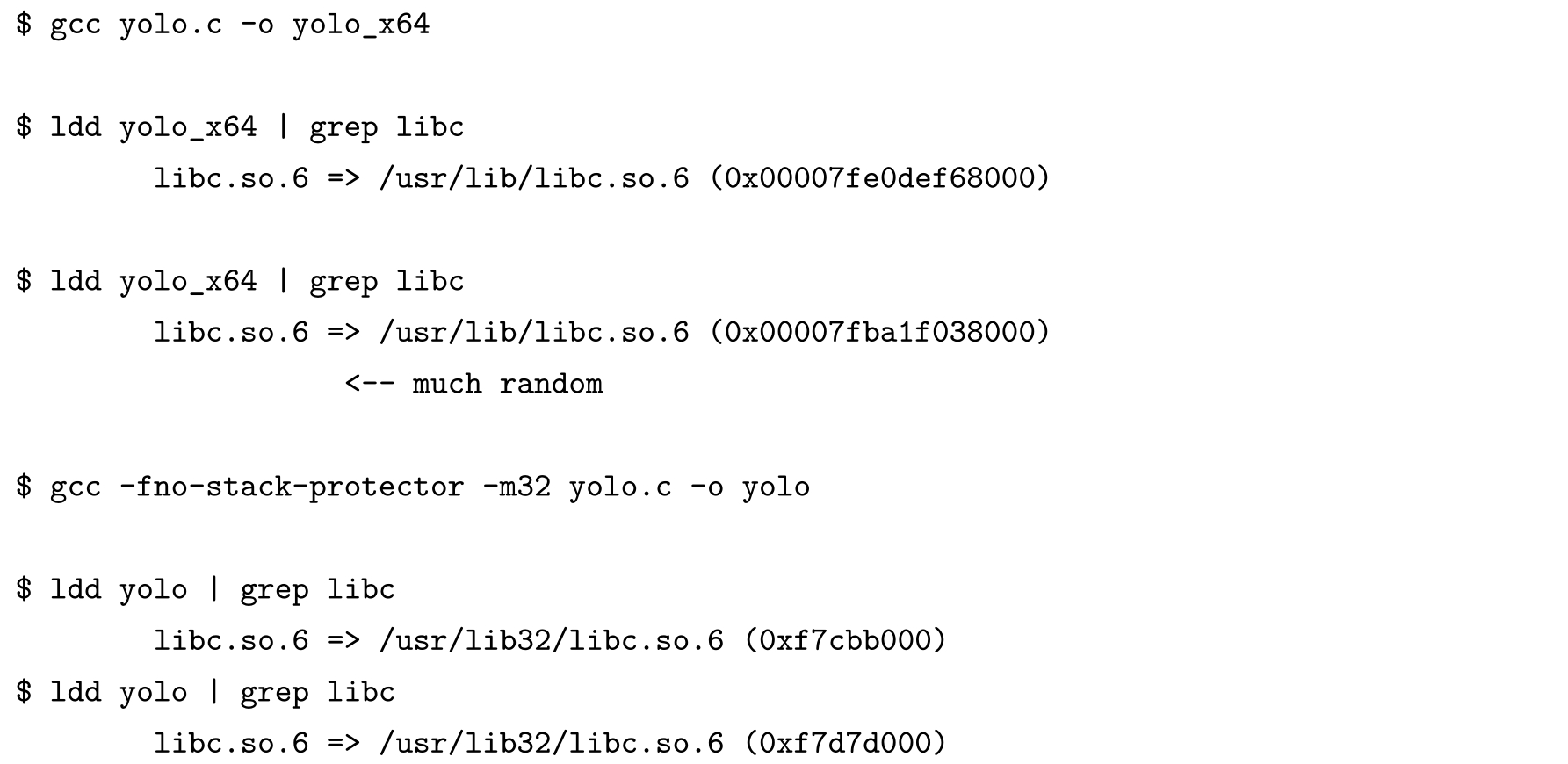 这里有个约定俗成的规定:64位系统中,pie是以7f开头的;32位系统中,pie则是以f7开头的。例如: