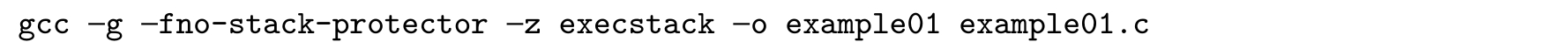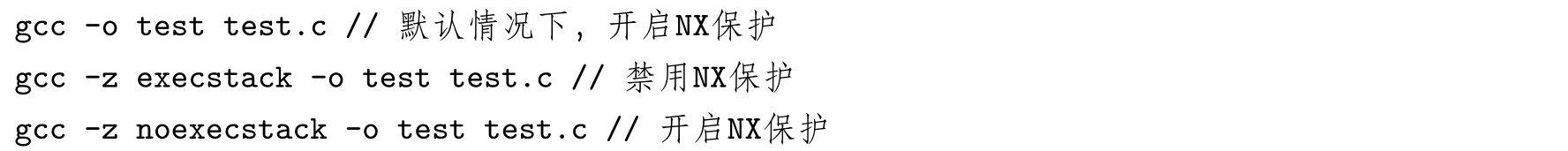 gcc编译器默认开启了NX选项,如果需要关闭NX选项,则可以向gcc编译器添加-z execstack参数。例如: