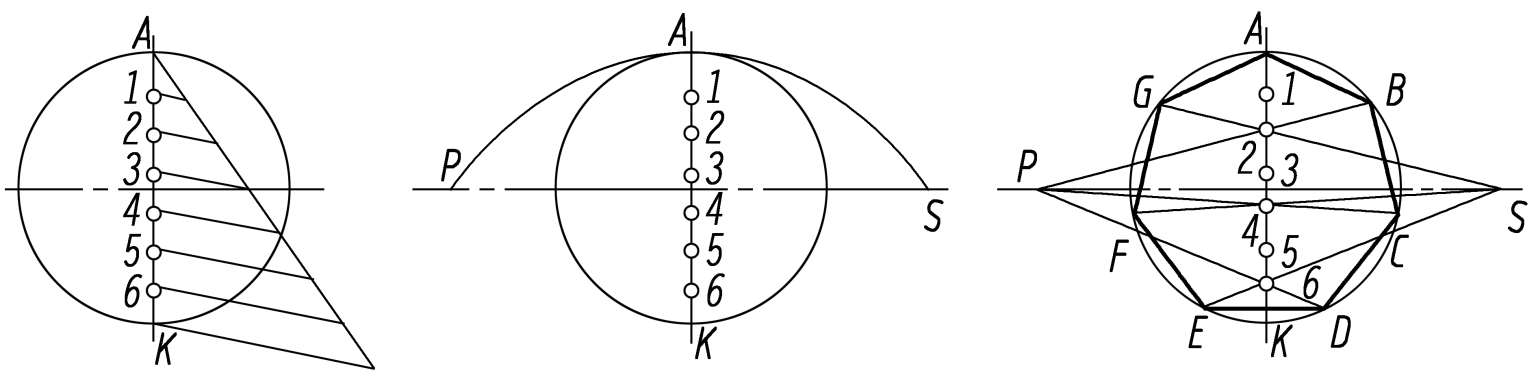①七等分外接圆直径AK。