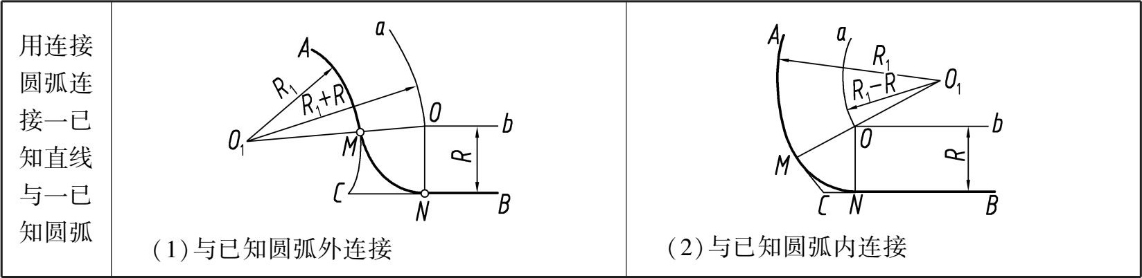 表 1.6 圆弧连接作图示例