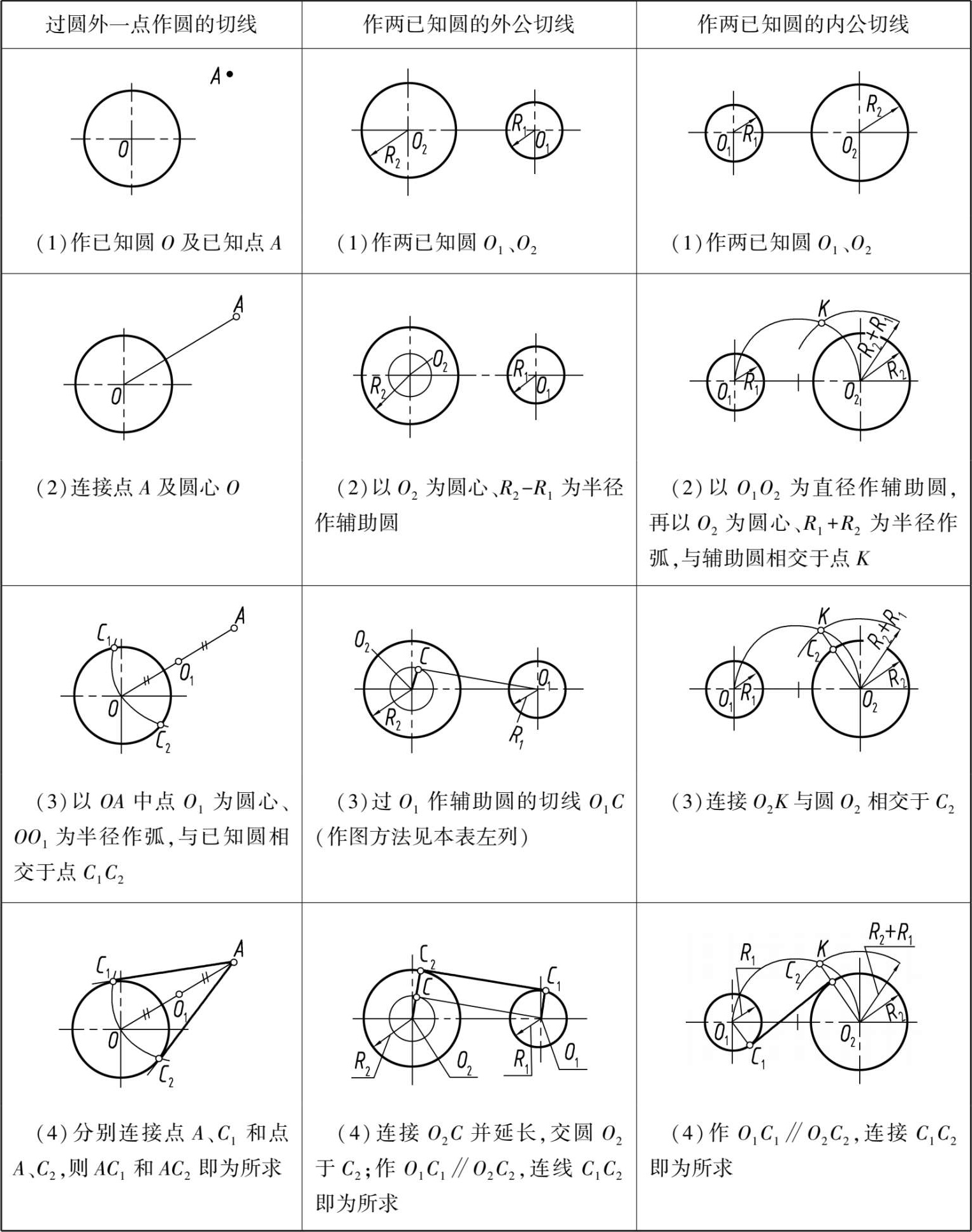 表 1.5 圆的切线的作图方法