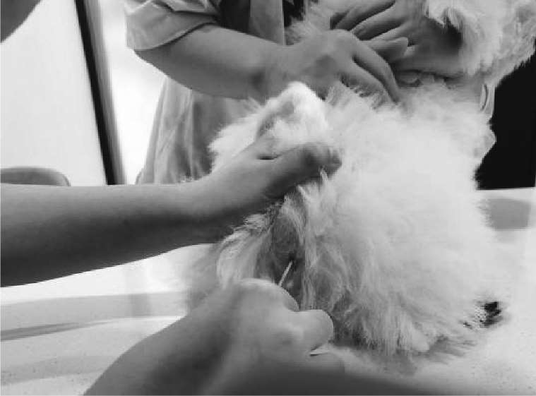 通过视诊和触诊,了解动物皮肤颜色、温度、湿度、弹性及疹疱等病变。