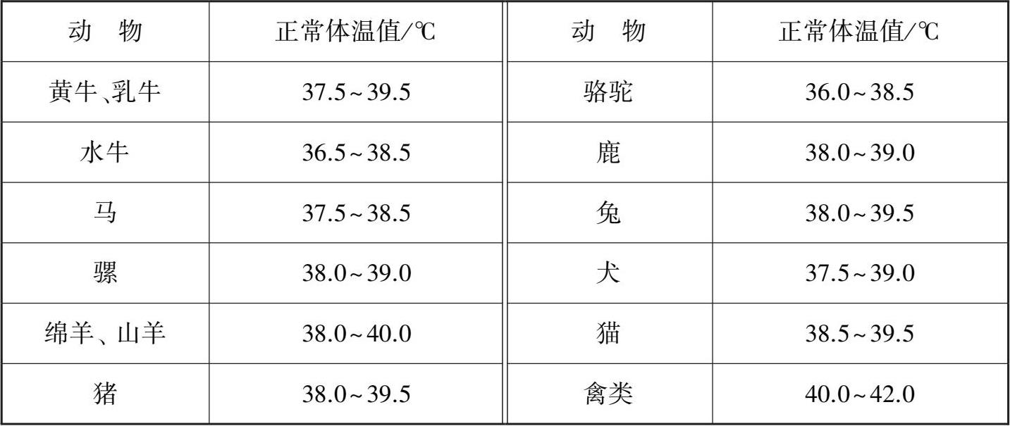 体温、脉搏及呼吸数,是动物生命活动的三大重要生理指标。健康动物,三大指标除受外界气候及运动、使役等环境条件暂时性影响外,变动常在一个恒定的范围内。动物患病,受病原因素的影响,常出现不同程度和形式的变化。因此,临床上测定这些指标,对诊断疾病和分析病程有重要的意义。