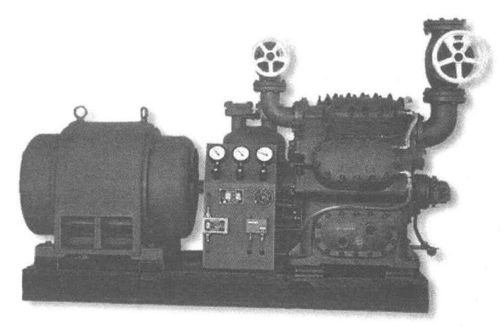 解:依据设计参数要求及厂家样本查询并计算,该设备汽缸数量为 2 个,缸体内径 100mm,设备重量 0.7t(包括同一底座上的主机、电动机、仪表及附件、底座的总质量),压缩机形式为活塞式V型双级,整体安装。