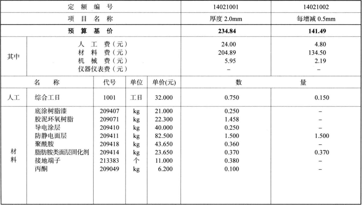 工作内容:场内清理、基面处理、装拆临时照明及排风装置、场地封闭、刷底涂、刮胶泥、安装接地端子、刷导层及防静电面层。