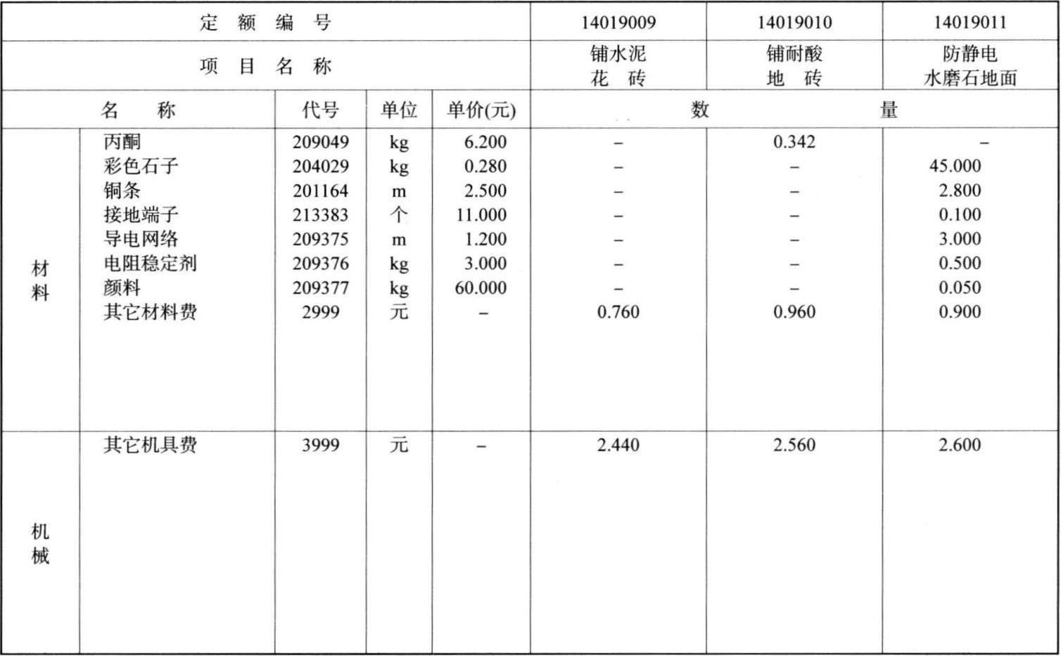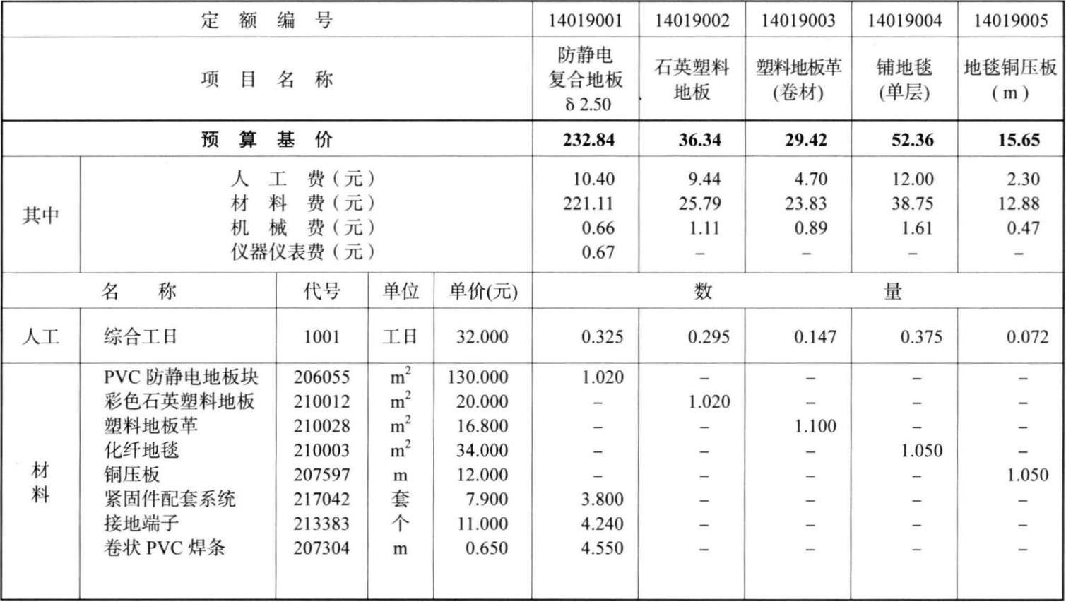 工作内容:基面处理、装拆临时照明、刷粘结剂、导电层、刷防静电蜡、接地端子连接等;清理基层地面、放线、裁剪、刷胶、铺设材石、钉压条、清整净面。