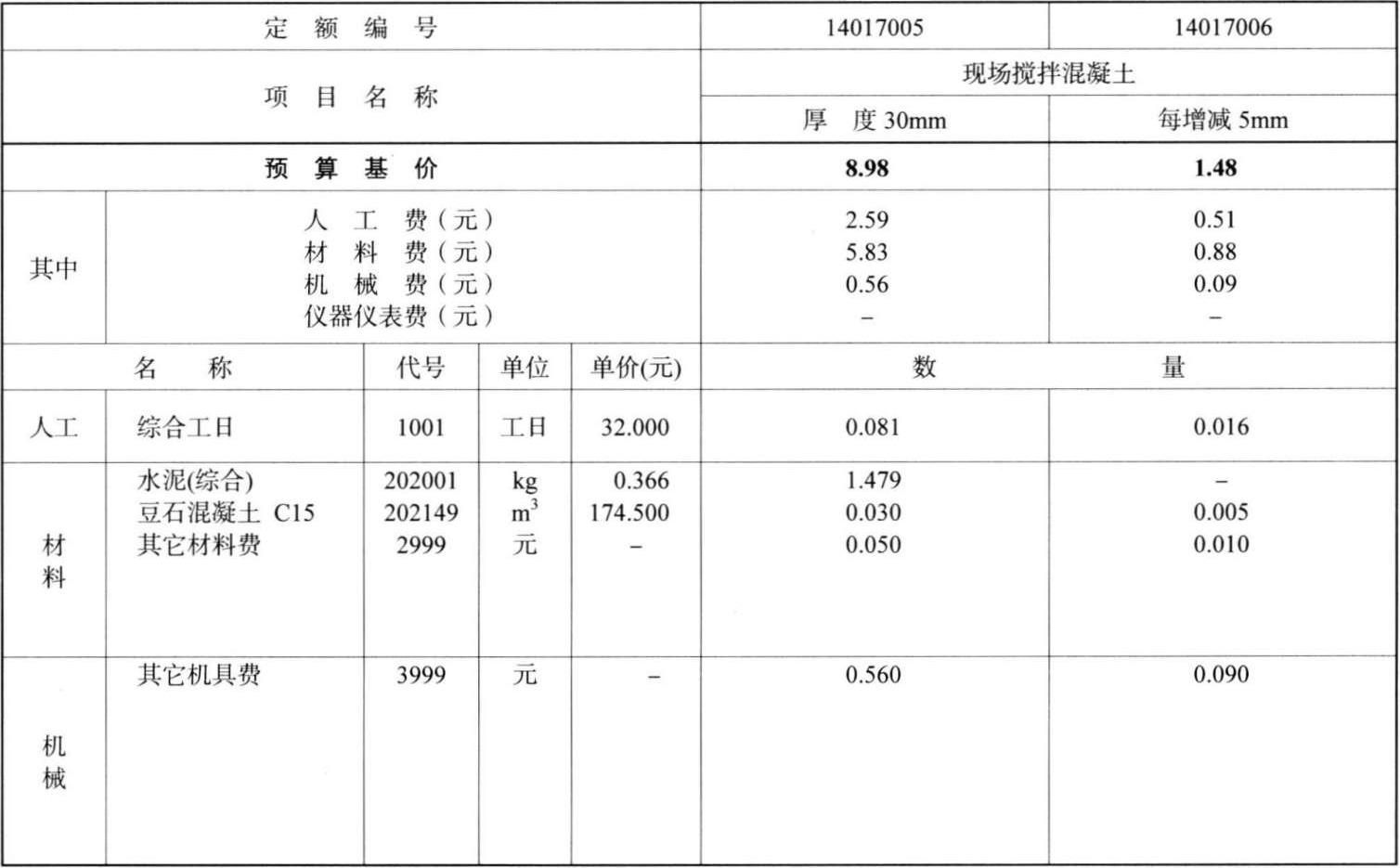 工作内容:清理基础、调制砂浆、搅拌细石混凝土、浇捣、抹平、养护。