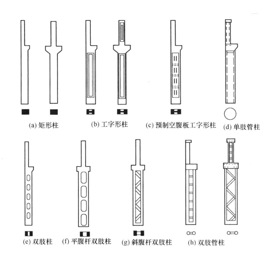 图2-36 单层工业厂房钢筋混凝土柱的类型