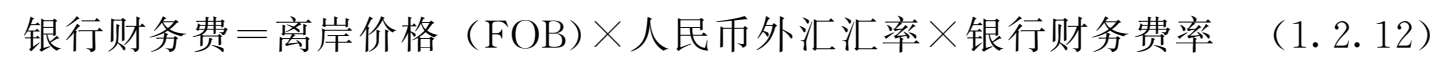(1)银行财务费,一般是指在国际贸易结算中,中国银行为进出口商提供金融结算服务所收取的费用,可按下式简化计算:
