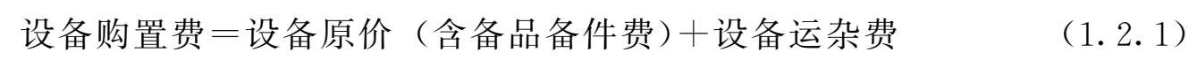 式中,设备原价指国内采购设备的出厂(场)价格,或国外采购设备的抵岸价格,设备原价通常包含备品备件费在内,备品备件费指设备购置时随设备同时订货的首套备品备件所发生的费用;设备运杂费指除设备原价之外的关于设备采购、运输、途中包装及仓库保管等方面支出费用的总和。