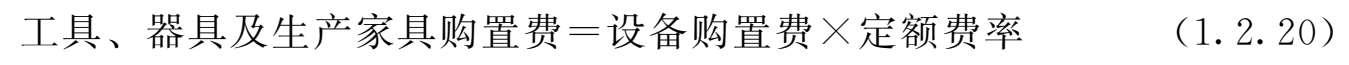 工具、器具及生产家具购置费,是指新建或扩建项目初步设计规定的,保证初期正常生产必须购置的没有达到固定资产标准的设备、仪器、工卡模具、器具、生产家具和备品备件等的购置费用。一般以设备购置费为计算基数,按照部门或行业规定的工具、器具及生产家具费率计算,计算公式为: