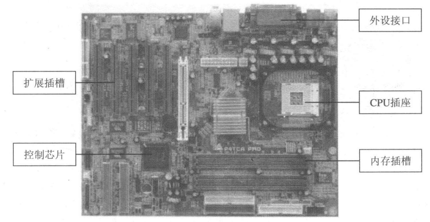 主板是微型计算机中最大的一块集成电路板,是微型计算机中各种设备的连接载体。微型计算机中通过主板将CPU等各种器件和外部设备有机地结合起来,形成一套完整的系统。常见的系统主板如图1-8所示。