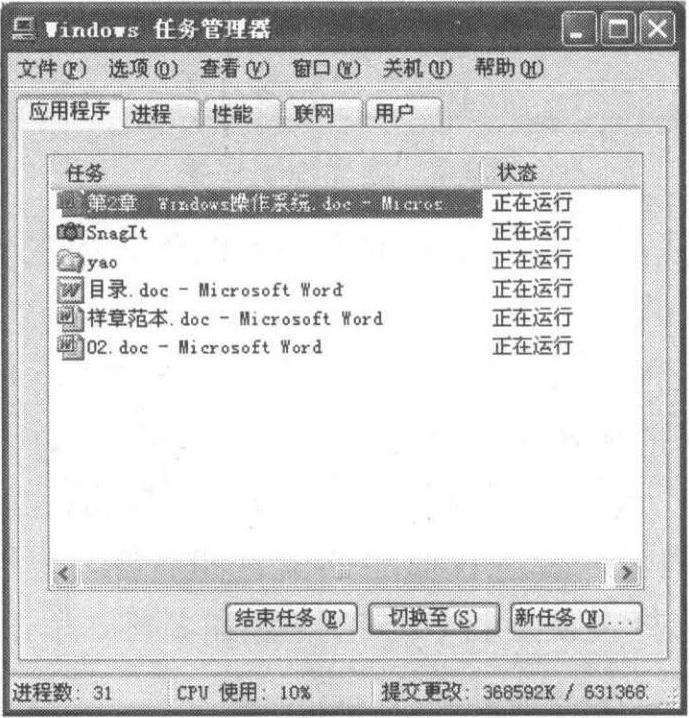 ③单击“结束任务”按钮,关闭选定的应用程序。