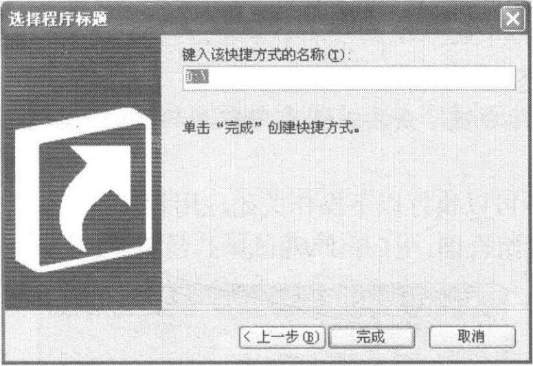 ⑥在“请键入快捷方式的名称”文本框中输入名称。单击“完成”按钮就可以在“开始”菜单中添加一个快捷方式。