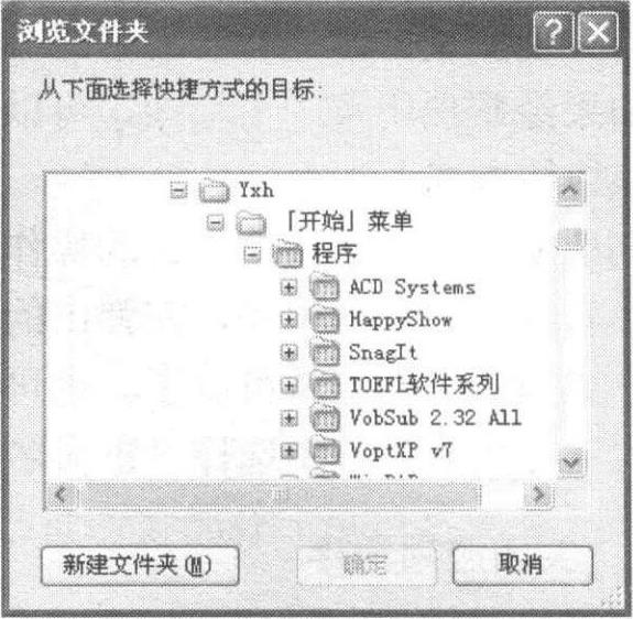 ④单击“下一步”按钮,打开如图2-6所示的“浏览文件夹”对话框,选择快捷方式存放的位置。
