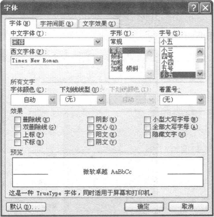组合框是文本框和列表框的集成。选择“格式”菜单中的“字体”菜单命令,打开如图2-12所示的对话框。该对话框中的“字形”和“字号”都是组合框,它允许用户在列表框中选择一项,也可以在文本框内输入。