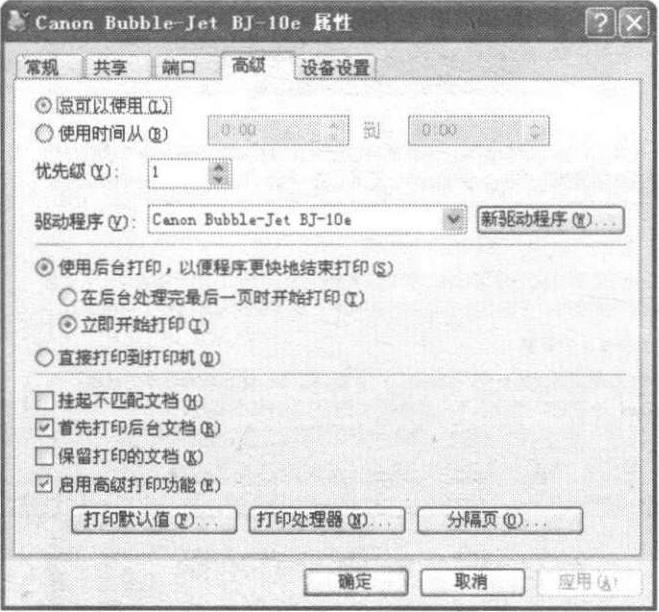 图2-10是描述某打印机属性的对话框。对话框的主要控件有:列表框、下拉列表框、文本框、命令按钮、单选按钮、复选框等。