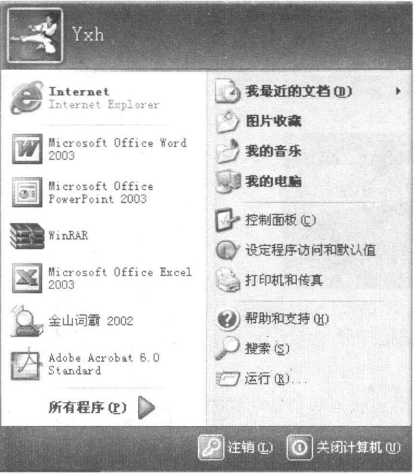 “开始”按钮是运行Windows XP应用程序的入口,这是执行程序最常用的方式。