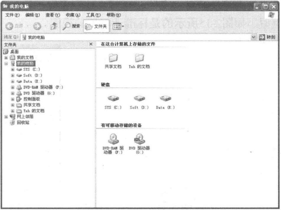 我的电脑是Windows XP中用户管理文件和文件夹的主要工具之一,它以可视化的图标展示了软盘驱动器、硬盘驱动器、控制面板等常用对象,利用我的电脑可以方便、快捷地进行文件、软盘的操作。