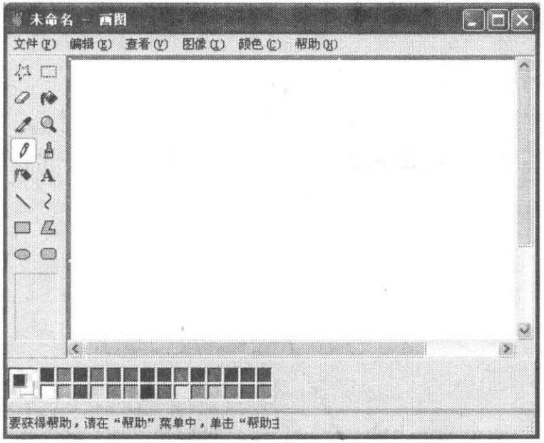 在Windows的桌面上执行“开始”→“所有程序”→“附件”→“画图”菜单命令,即可打开画图窗口,如图2-17所示。它由6个部分组成:绘图区、工具箱、工具形状栏、调色板、光标状态栏和滚动条。