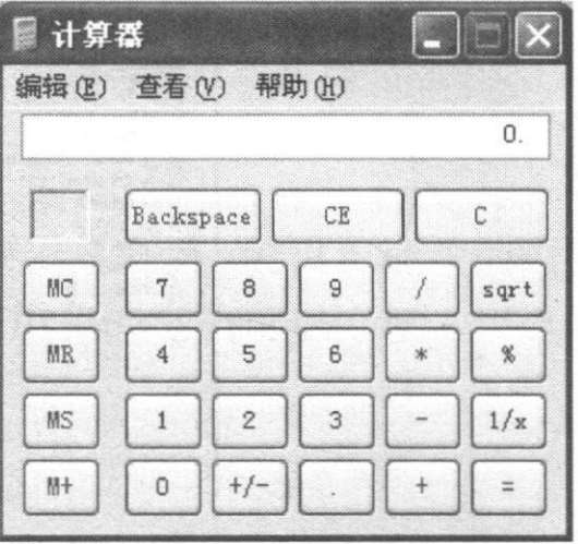 首次启动时默认的计算器是标准计算器,在Windows的桌面上执行“开始”→“所有程序”→“附件”→“计算器”菜单命令即可打开“计算器”窗口,打开“查看”菜单,可以选择所需要的类型,如图2-15所示的是标准计算器的视图。