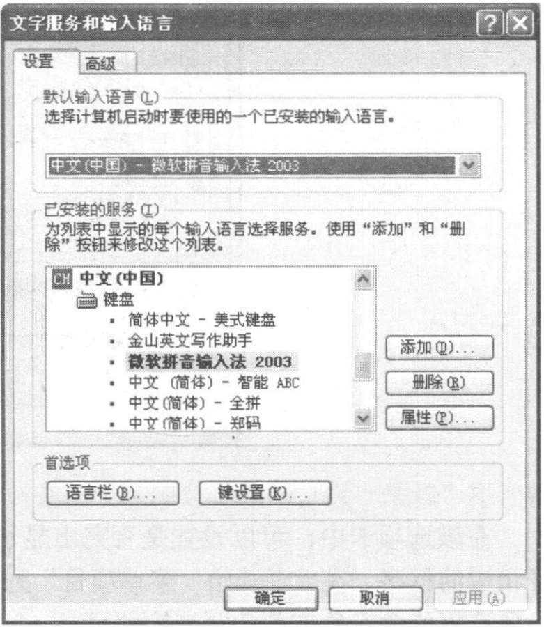 (3)在“文字服务和输入语言”对话框中,可以选择需要的语言和自己喜爱的输入法。