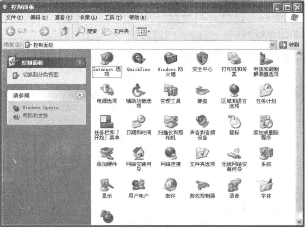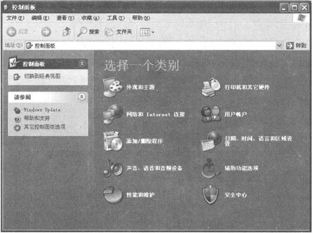相比以往的Windows操作系统, Windows XP的控制面板采用了类似于Web的网页方式,通过单击链接实现管理。同时, WindowsXP将各种设置按照功能不同分成9个类别。