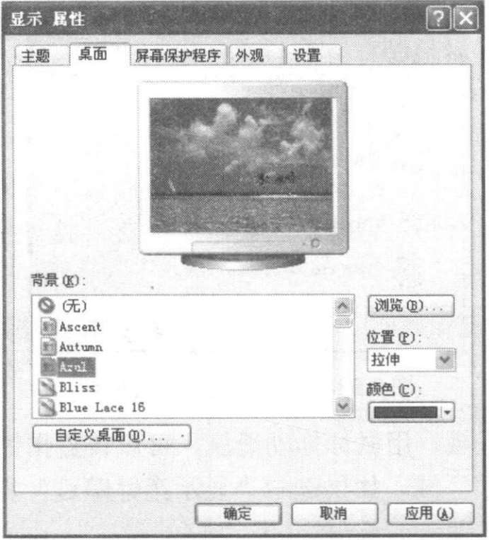 墙纸的显示方式有平铺、居中和拉伸。可在“位置”下拉列表框中选择需要的显示方式。