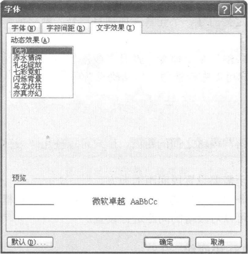 在“字体”对话框中单击“文字效果”标签,如图3-16所示,即可对文字进行文字效果设置。