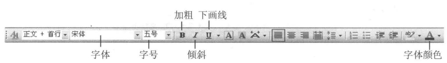 选定要设置的文本,单击“格式”工具栏上的相应按钮(见图3-13),被选中的文本的字体、字号、字形和字体的颜色就会随之发生相应的变化。